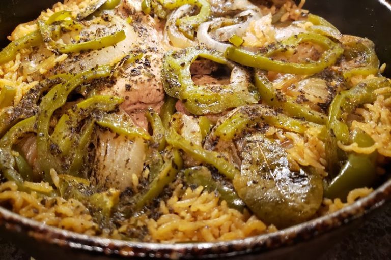 Mouth watering Pork Chops surrounded by tender beef flavored rice with fresh onions and bell peppers. A perfect family meal all in one pot. Add a Fresh Blended Salad or Dinner Rolls if desired.