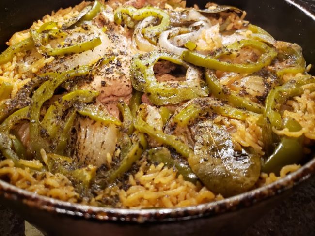 Mouth watering Pork Chops surrounded by tender beef flavored rice with fresh onions and bell peppers. A perfect family meal all in one pot. Add a Fresh Blended Salad or Dinner Rolls if desired.